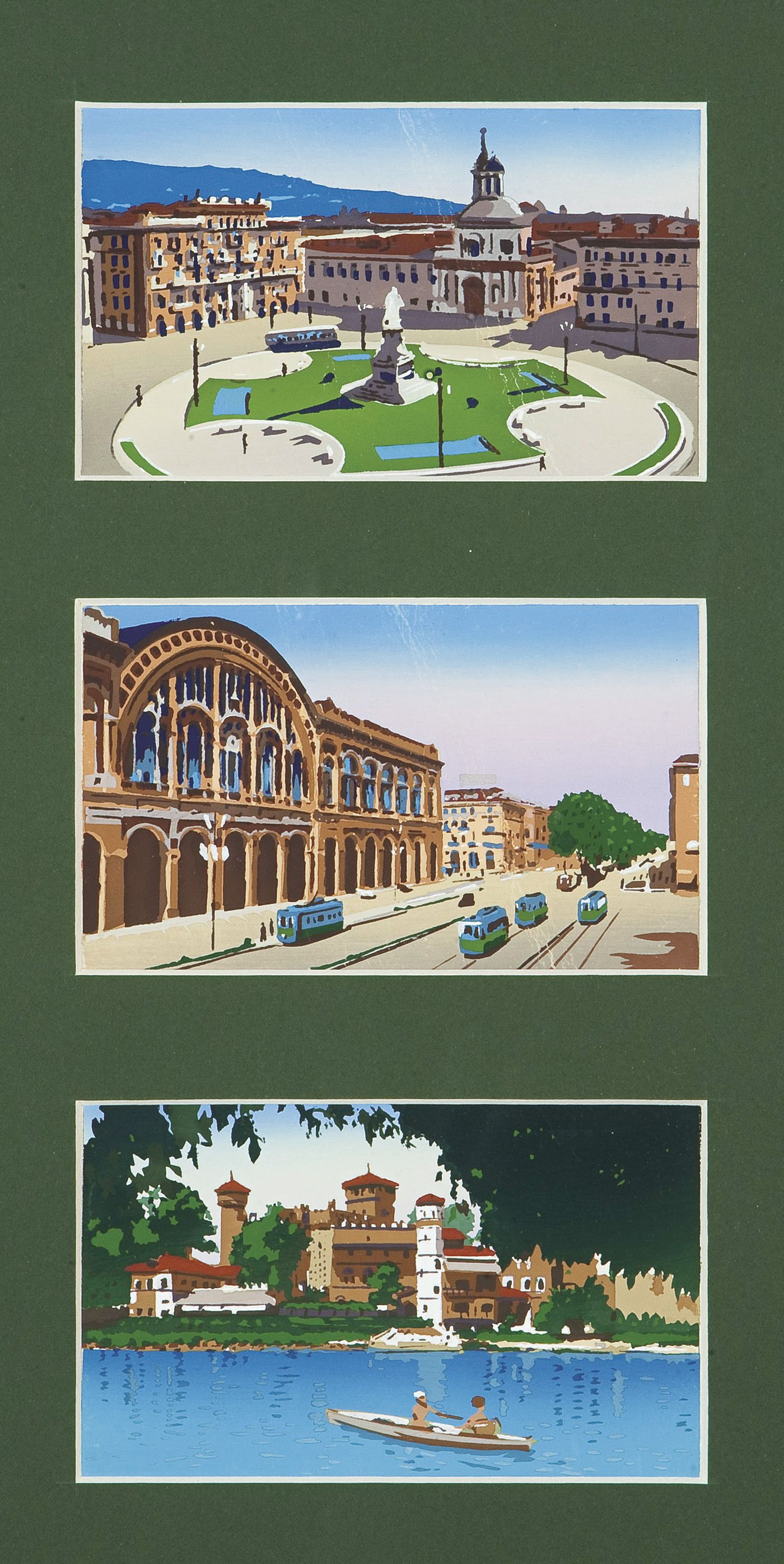 MUSSO CARLO (Balangero (TO) 1907 – 1968) - "Vedute torinesi", 8x13 tempere su carta