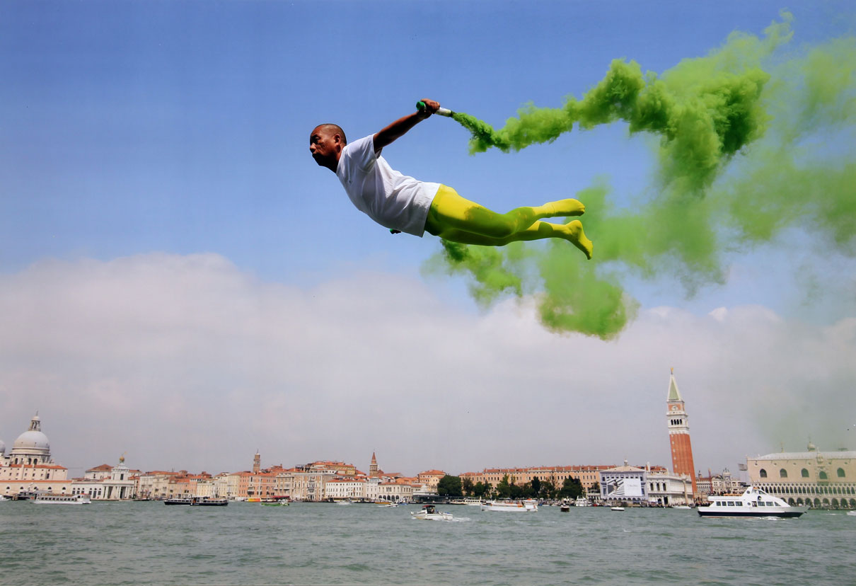 Li WEI Hubei (Cina), 1970 Flying over Venice, 2013, fotografia, cm. 80 x 120, 'Arte', Mondadori, luglio 2013 (copertina), Edizione di 10 esemplari #Etichetta della Biennale di Venezia con firma dell'artista; #etichetta di ARTantide (al retro)