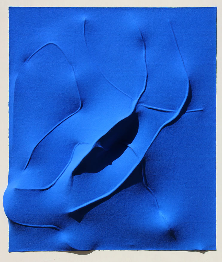 Agostino BONALUMI Vimercate (MI) 1935 - Desio, 2013 Blu, 1993, tempera vinilica su cartoncino estroflesso, cm. 100 x 82, Firma 'Bonalumi' (in basso a destra) #Etichetta e timbro di Lattuada Studio, Milano (al retro) Autentica dell'Archivio Bonalumi, con n° 93-005, e con firma dell'artista