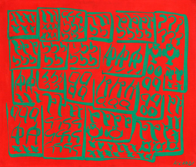 Carla ACCARDI Trapani 1924 - Roma, 2014 Rossoverde, 1970, caseina su tela,...