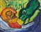 Bengt LINDSTROM Storsjokapell 1925 - Storsjokapell 2008 L'homme au chien vert, 1976, olio su tela, cm. 33 x 41, Firma 'Lindstrom' (in basso a sinistra) Autentica dell'Association des amis de l'ouvre de Bengt Lindstrom, con firma di Michèle Lindstrom