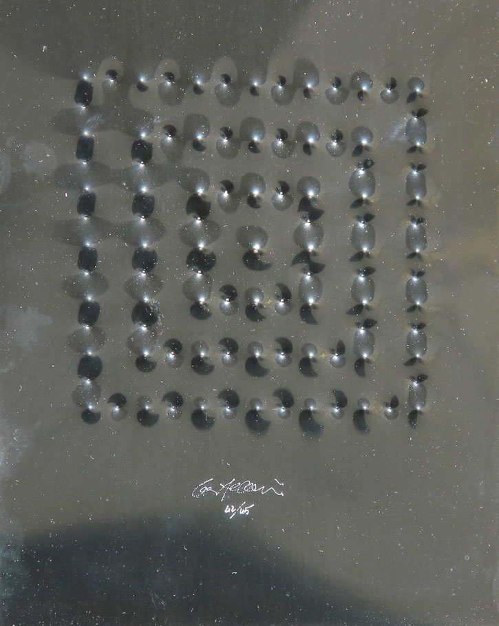 Enrico CASTELLANI Castelmassa 1930 Senza titolo, 2008, lamina estroflessa, cm. 31.5 x 23.5, Edizione di 45 esemplari #Firma, numerazione 'Castellani, 42/45' (in basso al centro) #Opera accompagnata dal volume 'Vola alta, parola', catalogo della mostra bibliografica per celebrare i vent'anni delle Edizioni d'Arte Colophon, 7 maggio-8 giugno 2008, Verona