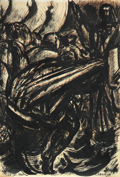Guido CADORIN Venezia, 1892 - Venezia, 1976 Senza titolo, 1940, tecnica mista su cartoncino, cm. 25 x 16.5, Firma 'Cadorin' (in basso a destra); #data '25.VI.1940' (in basso a sinistra)