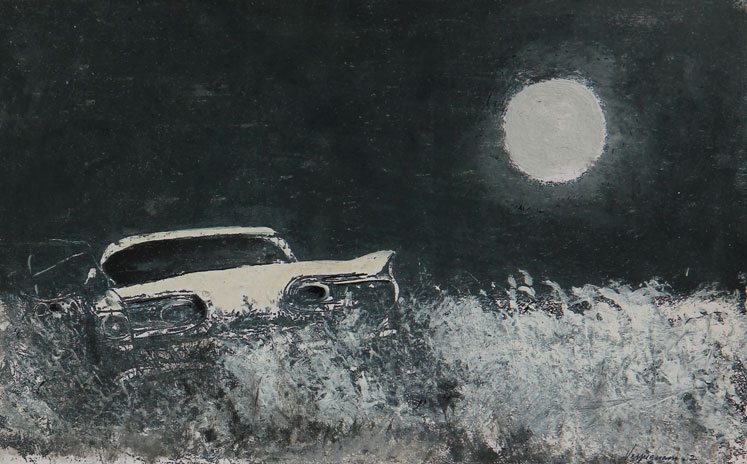 Renzo VESPIGNANI Roma 1924 - Roma 2001 Senza titolo, 1982, olio su cartone, cm. 17.5 x 29, Firma, data 'Vespignani, 82' (in basso a destra)