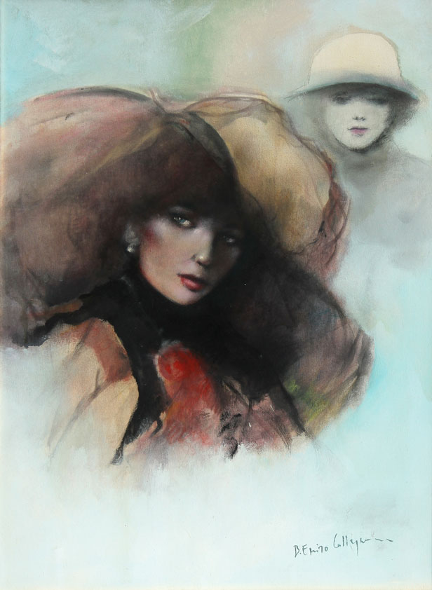 Bruno Emiro CALLEGARI Lucca, 1920 Figure, 1983, olio su tela, cm. 70 x 50, Firma 'B. Emiro Callegari' (in basso a destra) #Misure '50x70' (al retro)