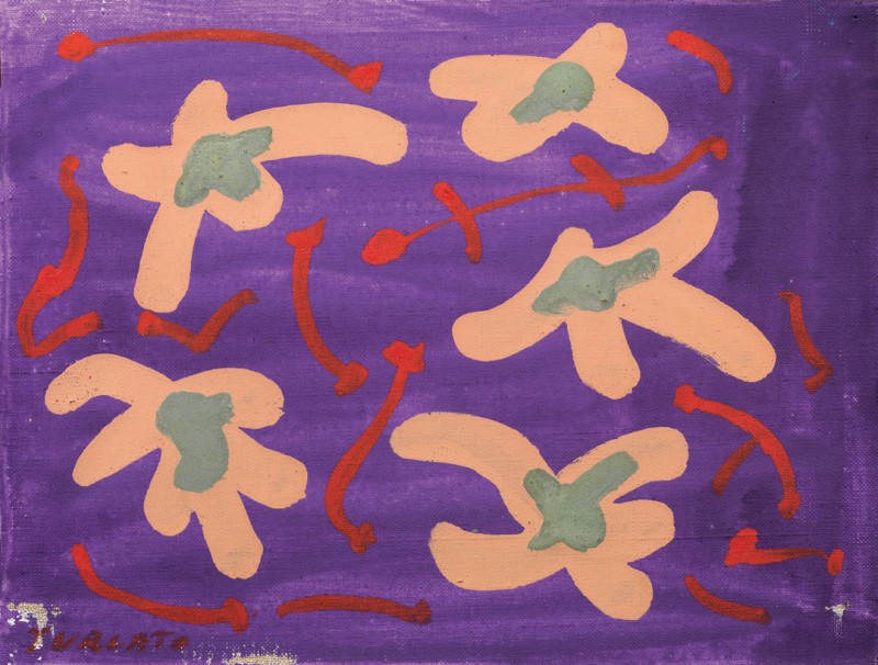 Giulio Turcato Mantova 1912 - Roma 1995 Composizione Tempera su tela, cm. 31,8x41,8 Firma in basso a sinistra: Turcato. Al verso sul telaio: timbro L'Artistica, Roma. Storia: L'Artistica, Roma; Collezione Tardivo, Roma; Collezione privata Alcune cadute di colore.
