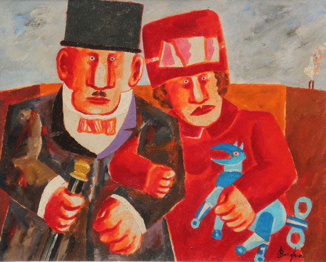 Franz BORGHESE Roma 1941 - Roma 2005 Coniugi con cane meccanico, olio su...