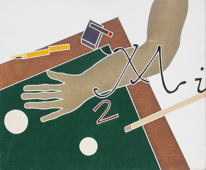 Emilio TADINI Milano 1927 - Milano 2002 Michelangelo, 1977, olio su tela, cm. 54 x 66, Firma, titolo, data 'Emilio Tadini, Michelangelo, 1977' (al retro) Autentica dell'artista su fotografia