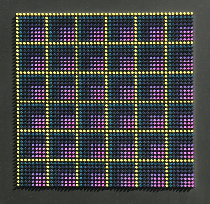 Franco COSTALONGA Venezia 1933 Gradienti di luminosità CIL.QEVBG, 1995, cilindretti su tavola, cm. 50 x 50, Firma, titolo, firma, data 'Costalonga, CIL.QEVBG, F. Costalonga, 95' (al retro) Autentica dell'artista su fotografia