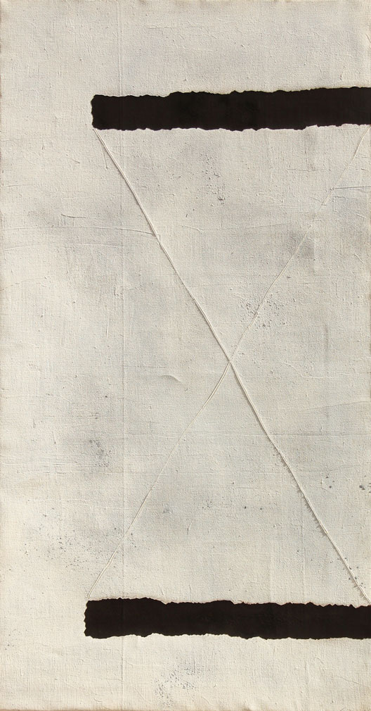 Giuseppe SANTOMASO Venezia 1907 - Venezia 1990 Negazione bianca, 1972, tecnica mista su tela, cm. 133 x 70, 'Santomaso - Catalogo ragionato', Alfieri Edizioni, Venezia, 1975,rif.609 #C.Roma, 1973, p.103, n.39, Firma 'Santomaso' (in basso a destra) #Firma, data 'Santomaso, 72'; #timbro di Gio Arte, Mestre (al retro) Autentica a cura della Galleria Blu, Archivio Giuseppe Santomaso
