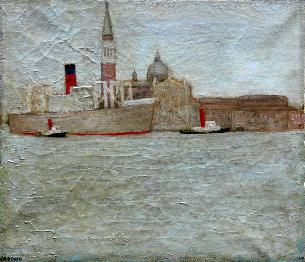 Guido CADORIN Venezia, 1892 - Venezia, 1976 L'isola di San Giorgio III, 1949, olio su tela, cm. 50 x 59, Firma 'Cadorin' (in basso a sinistra); #data '49' (in basso a destra)