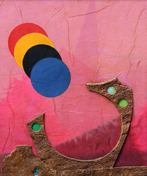 Roberto CRIPPA Monza 1921 - Bresso 1972 Senza titolo, anni 70, collage su tavola, cm. 61 x 50, G. Stefanini, R. Crippa J, 'Roberto Crippa Catalogo Generale delle Opere', Vol. II, p. 368, Rep. 980, Firma, data 'R. Crippa, 71'; #etichetta e timbro della galleria Pace, Milano, Catalogo Generale delle Opere di Roberto Crippa; #etichetta della galleria Eidac, Milano (al retro) Autentica della Galleria Pace, Milano, Catalogo Generale delle Opere di Roberto Crippa, con n° 980, e con firma del figlio Roberto Crippa J.
