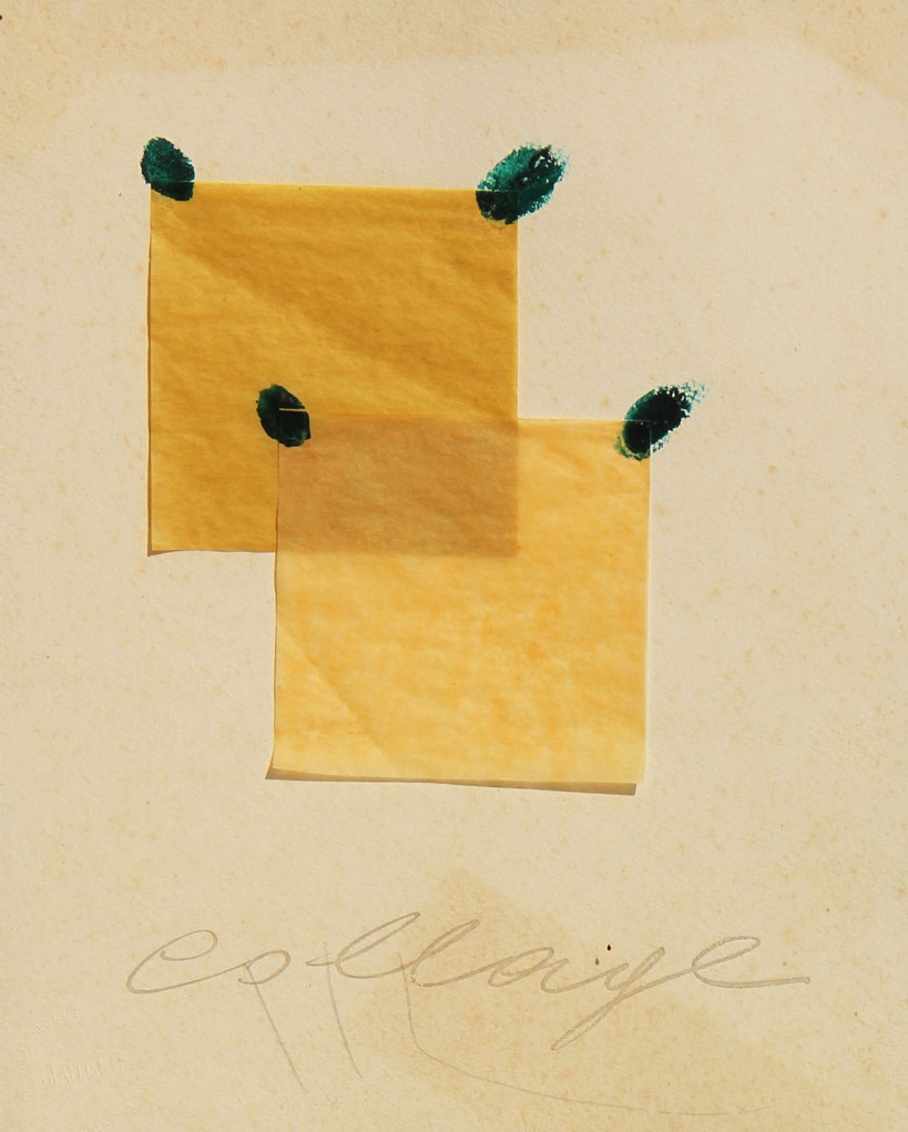 Aldo MONDINO Torino 1938 - Torino 2005 Collage, anni 70, tecnica mista e collage su cartoncino, cm. 28 x 22, Titolo, firma 'Collage, Mondino' (in basso al centro)