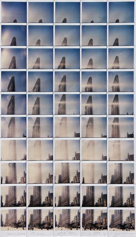 Maurizio GALIMBERTI Meda 1956 New York Flat, 2008, mosaico di polaroid, cm. 83 x 48, 'Flat iron by Maurizio Galimberti. Quaderni N°5 con un racconto di Giuliana Scimé', a cura di V. Galimberti, Elettra Fotolito, Milano, p. 19, Titolo, data, firma 'New York Flat..N° 6 del 21.02.2008 by Maurizio Galimberti' (in basso)