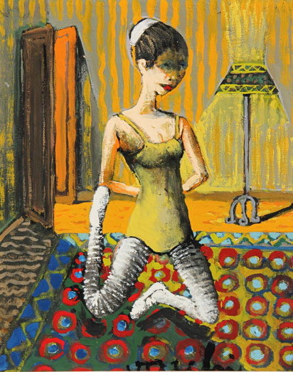 Sergio VACCHI Castenaso 1925 Il salto, 1992, olio su tela, cm. 45 x 35, Firma 'Vacchi' (in basso a destra) #Titolo, firma, luogo 'Il salto, Vacchi, Roma' (al retro) Autentica dell'artista su fotografia in data Roma, 2-2-1993