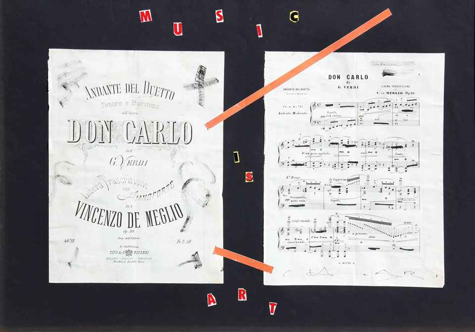 Giuseppe CHIARI Firenze 1926 - Firenze 2007 Music is art, collage e tecnica mista su cartoncino, cm. 50 x 70, Firma 'Chiari' (in basso a destra) #Etichetta di Casati arte contemporanea, Muggiò (al retro) Autentica dell'artista su fotografia