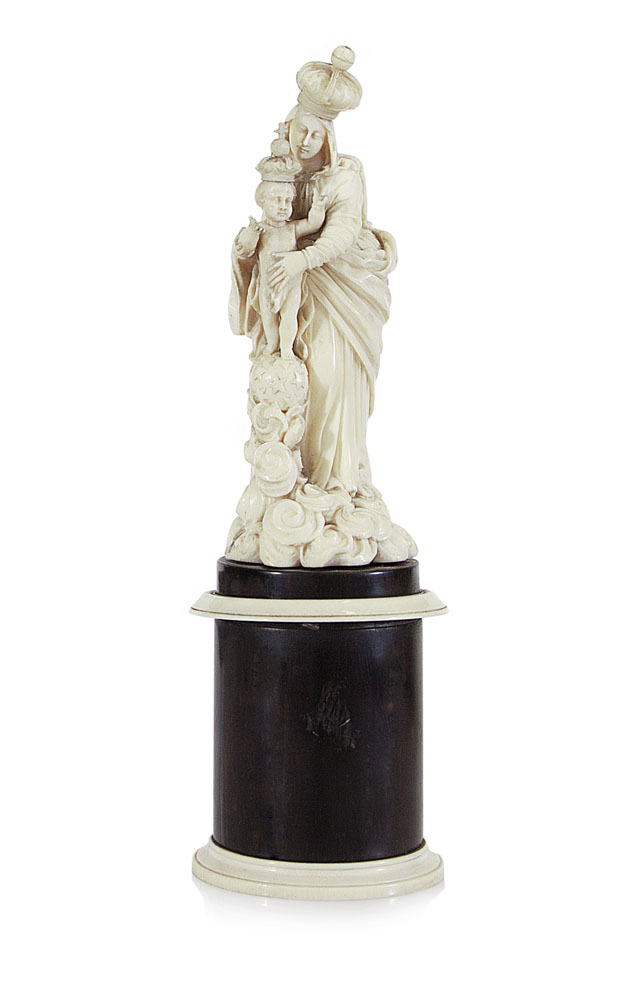 AVORIO EUROPEO SCULTURA IN AVORIO, XIX SECOLO, raffigurante Madonna con...
