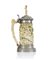 TANKARD IN AVORIO E ARGENTO, XIX SECOLO, cilindrico con coperchio incernierato cimato da putto, base gradinata con rilievi geometrici, decoro ad intaglio con scene di battaglia medievali; restauro e lievi sbeccature.