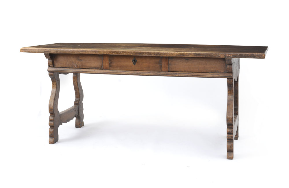 MOBILE DEL XVII SECOLO TAVOLO FRATINO IN NOCE, XVII SECOLO, gambe a lira e...