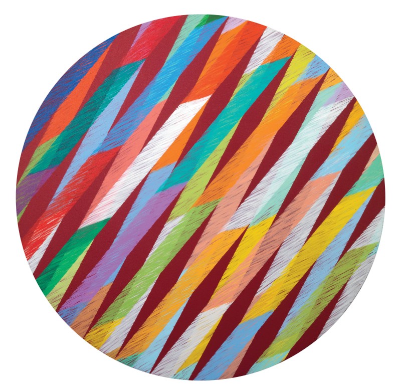 Piero Dorazio Roma 1927 - Todi (Pg) 2005 All'ora, 1999 Olio su tela, cm. 100 ø Firma, data e titolo al verso sulla tela: Piero Dorazio 1999 / "All'ora"; sul telaio e sul risvolto della tela: due timbri Studio Piero Dorazio, con n. 4604. Foto autenticata dall'artista, in data 2/7/1999.