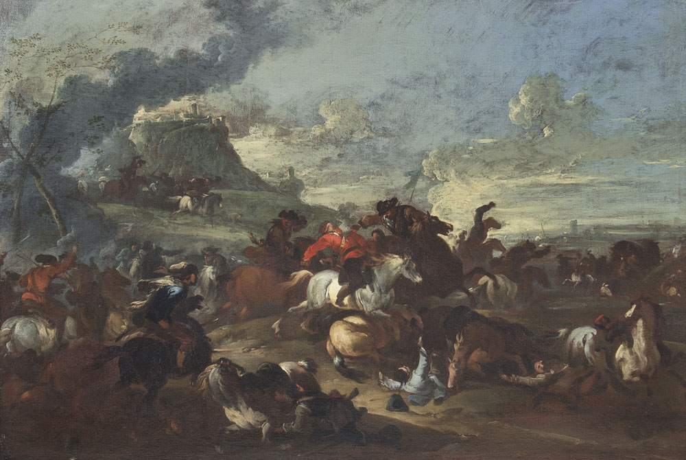 MONTI FRANCESCO Brescia 1646 - Parma 1712(attribuito a) Scena di battaglia...