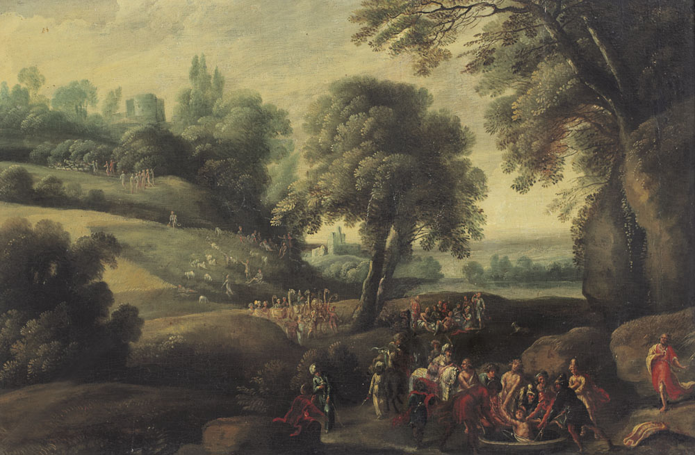 PITTORE FIAMMINGO DEL XVII SECOLO Paesaggio con Giuseppe cacciato dai...