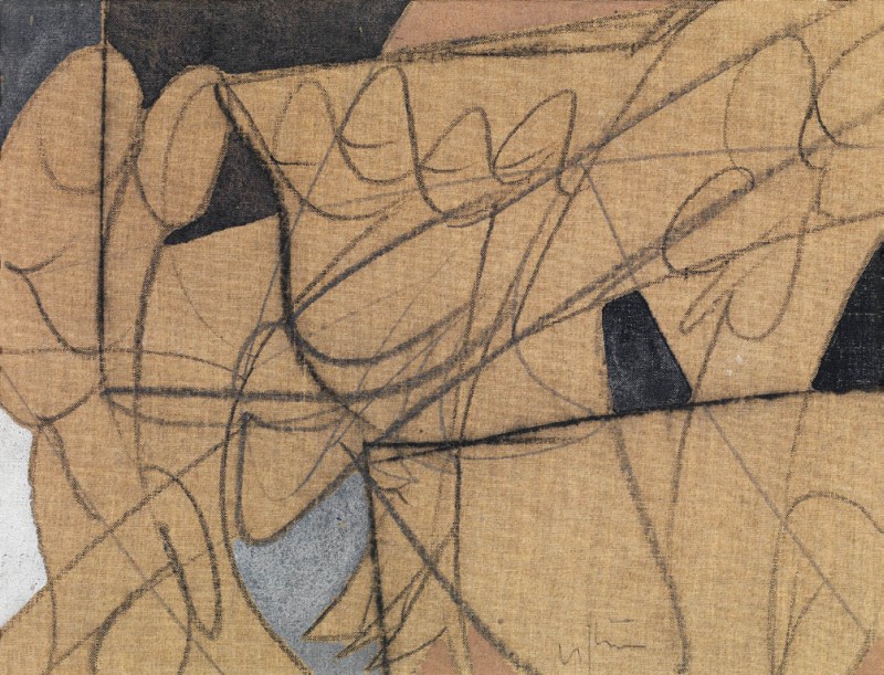 Renato Volpini Urbino 1934 Prova..., 1962 Tecnica mista su tela, cm. 19,3x25 Firma in basso a destra: Volpini. Al verso sul telaio: etichetta Renato Volpini / anni Sessanta, con dati dell'opera e n. AS 248 (40825): etichetta Volpini Cat. n. 4082. Foto autenticata dall'artista, con n. AS 248 (4082).