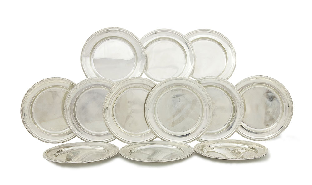 ARGENTI RECENTI DODICI PIATTI IN ARGENTO, XX SECOLO, circolari lisci con...