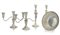 LOTTO DI DIVERSI OGGETTI IN ARGENTO, INIZIO XX SECOLO, composto da una coppia di candelabri a tre fiamme, una coppia di candelieri scanalati e una bowl liscia; qualche ammaccatura e zavorrature.