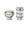 UN ALABARELLO IN MAIOLICA, XVII SECOLO E UNA VASO DA FARMACIA IN MAIOLICA, XIX SECOLO, decoro in blu con stemma policromo e decoro a fiori con riserva; danni e mancanze.