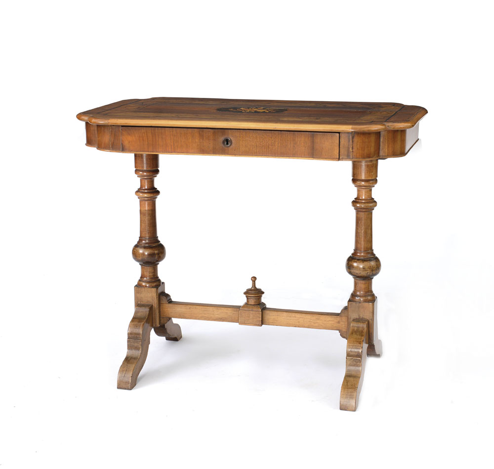 MOBILE DEL XIX SECOLO TAVOLINO SCRITTOIO IN LEGNI VARI, XIX SECOLO, piano...
