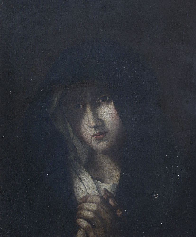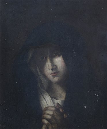 PITTORE DEL XVIII SECOLO Vergine orante Olio su tela, cm 48,5x40; restauri.