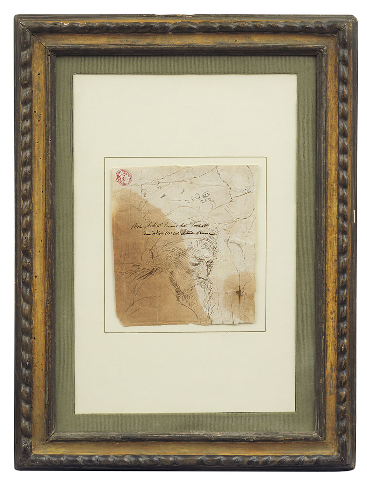 Grafite su carta, cm 20,5x18,5; reca scritta sul disegno: "Mihi Archiepiscopo Jouanni(s) Antonii Torricelli // dono dedit N.N. AlbertBerretini"