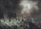 PITTORE DEL XVIII SECOLO Marina in burrasca con veliero e figure Olio su...