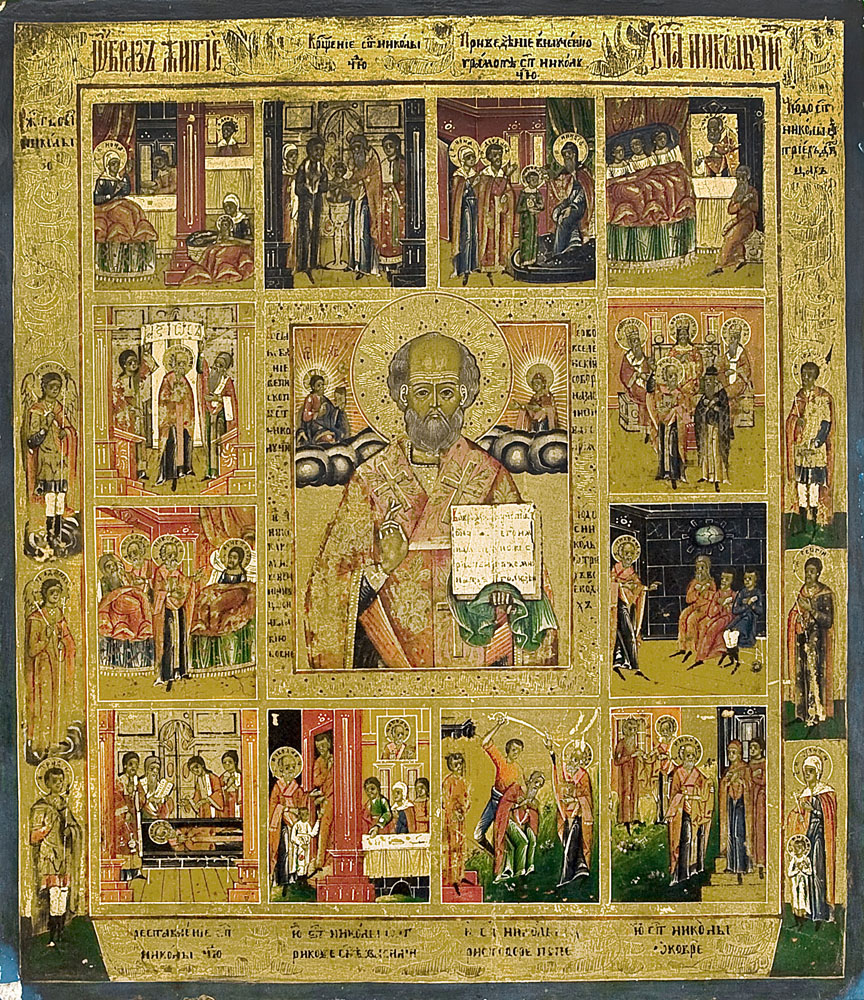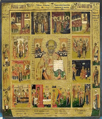 ICONA RUSSA DEL XIX SECOLO Icona agiografica di San NicolaTempera all'uovo su...