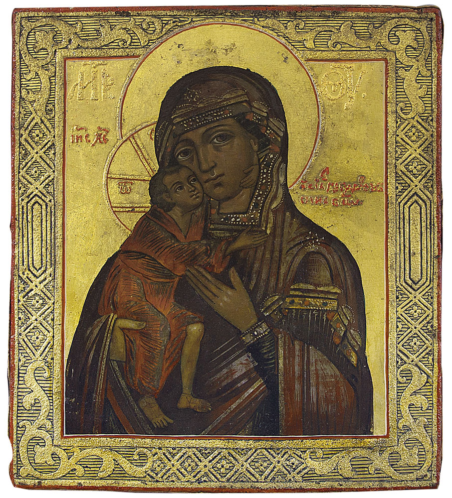 ICONA RUSSA DEL XIX SECOLO Madonna della tenerezza di Fedorov Tempera...
