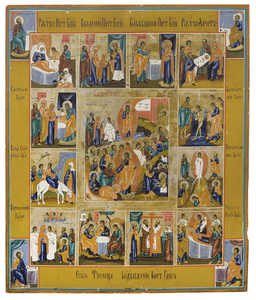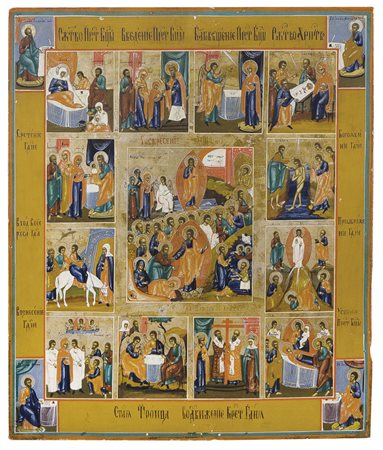 ICONA RUSSA DEL XIX SECOLO Dodici grandi feste Tempera all'uovo su tavola, cm...