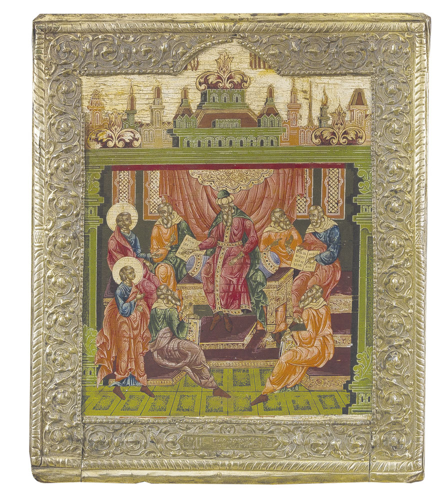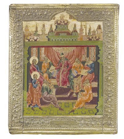 ICONA RUSSA DEL XIX SECOLO Cristo fra i dottori Tempera all'uovo su tavola...