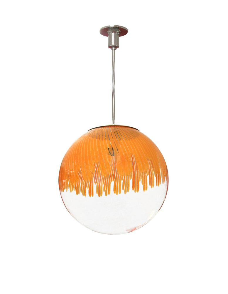 LAMPADARIO "ANEMONE" IN VETRO PENNELLATO, VENINI, L.DIAZ DE SANTILLANA, ANNI '70, globulare pennellato arancio.