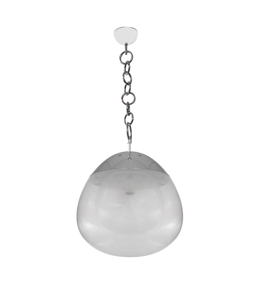 LAMPADARIO IN VETRO E METALLO, C.NASON PER MAZZEGA, ANNI '70, globulare in vetro bullicante a doppia membrana.