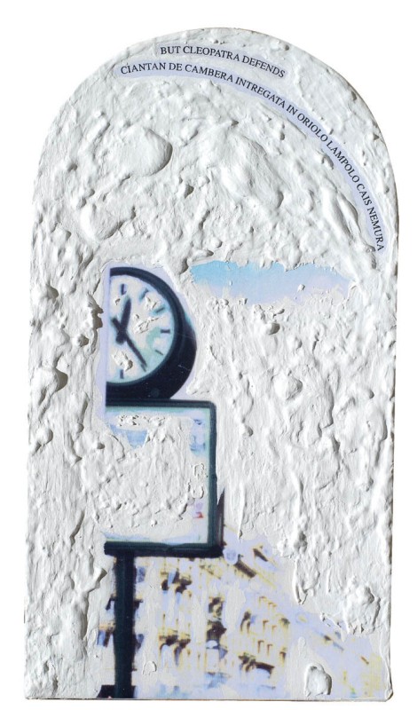 Emilio Isgrò Barcellona Pozzo di Gotto (Me) 1937 L'ora di Cleopatra, 1994 Tecnica mista su cartone in teca di plexiglass, cm. 37,3x26,2x4,3 (teca) Titolo, firma e data al verso sul cartone: L'ora di Cleopatra / Emilio Isgrò / 1994. Storia: Opera acquistata direttamente dall'artista; Collezione privata
