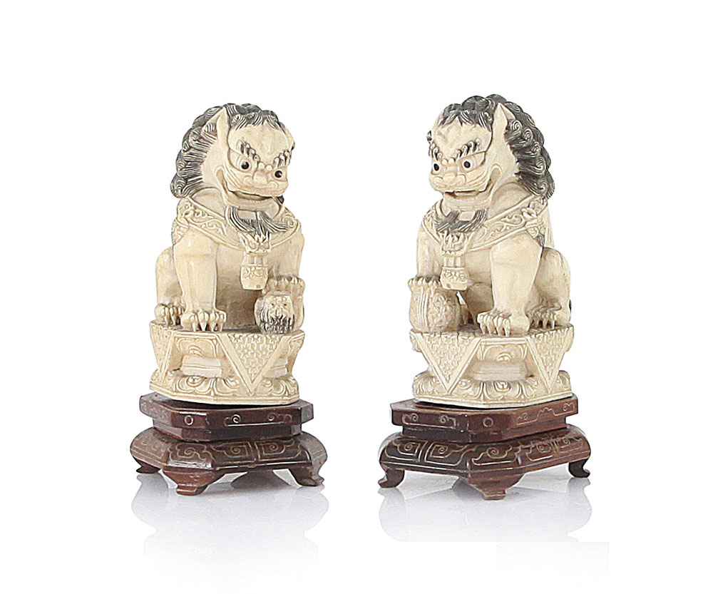 Lotto 684 | AVORIO COPPIA DI SCULTURE IN AVORIO, CINA, XX SECOLO, raffiguranti cani di...