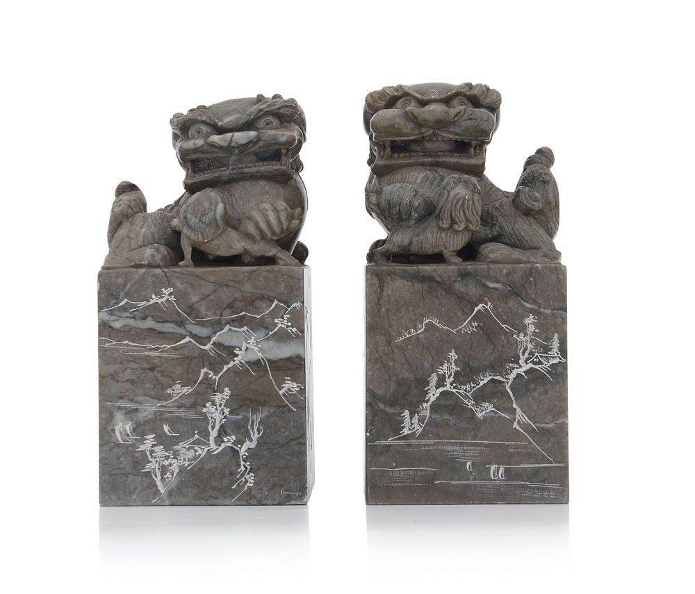 ARTE ORIENTALE COPPIA DI SCULTURE IN PIETRA, CINA, XX SECOLO E UN PIATTO IN...