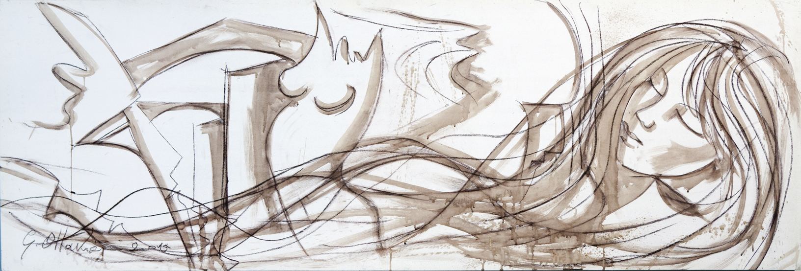 Ottaviani Giuliano Simbiosi in concerto Caffè e pigmenti naturali su tela, cm. 72x212