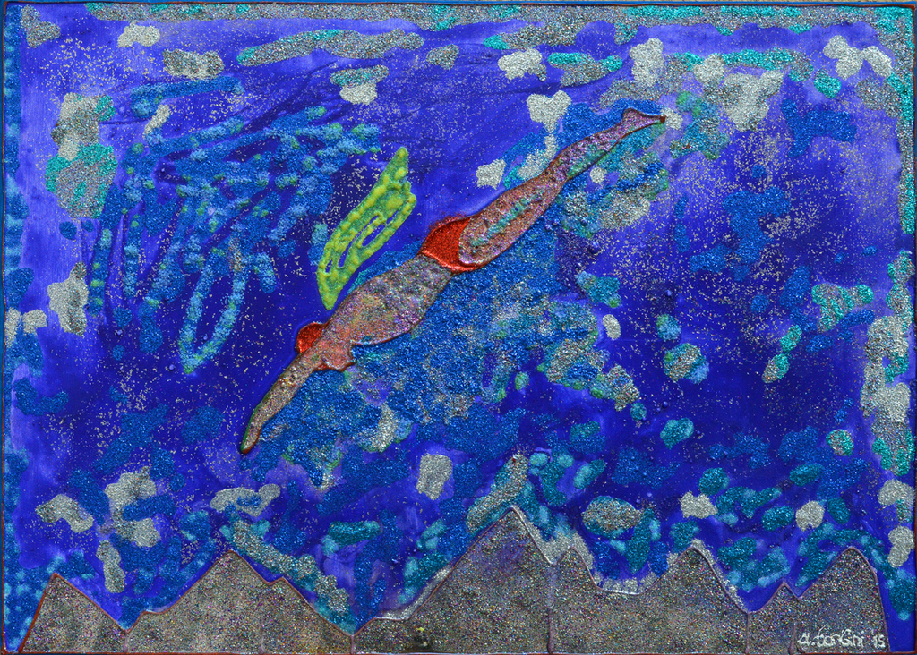Alberto Bongini "il tuffatore" Tecnica mista su tela cm 50x70.Autentica dell'artista su foto