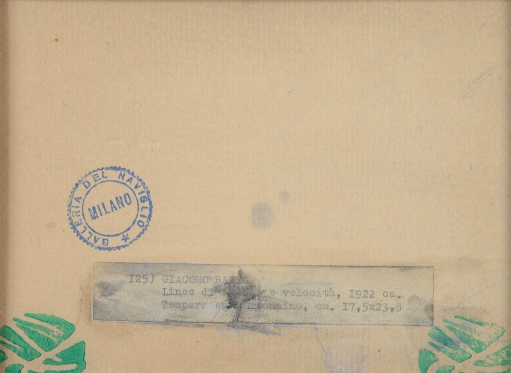on the reverse: stamp of Galleria del Naviglio, Milan