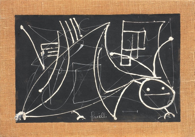 Angelo Savelli Pizzo Calabro (Cz) 1911 - Castello di Boldeniga (Bs) 1995 Senza titolo Tecnica mista su carta applicata su tela, cm. 27x39 Firma in basso al centro: Savelli.