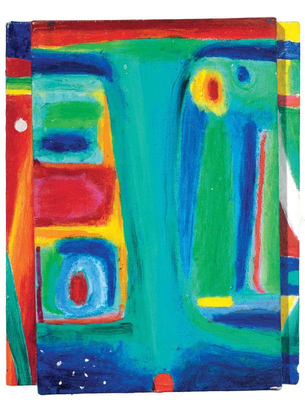 Nicola De Maria Foglianise (Bn) 1954 Testa orgogliosa celeste, 1986 Olio su tela, cm. 30,5x24 Titolo e data al verso sul telaio: Testa orgogliosa celeste 1986.