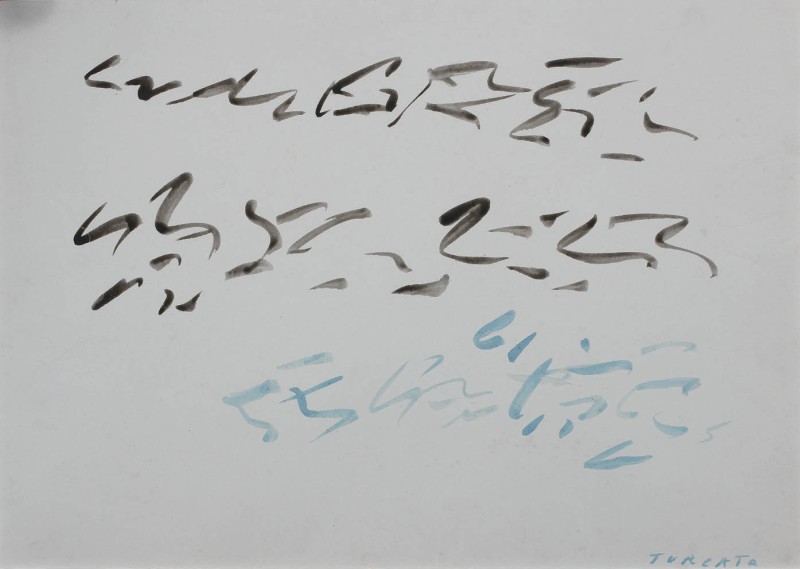 Giulio Turcato Mantova 1912 - Roma 1995 Composizione, 1960 ca. Tempera su cartoncino, cm. 49,5x70 Firma in basso a destra: Turcato; al verso: numero DSP188028ME11HB: timbro Collezione privata / Geom. Titi Oldrini / Legnano. Certificato su foto Archivio Giulio Turcato, con n. DSP188028ME11HB.