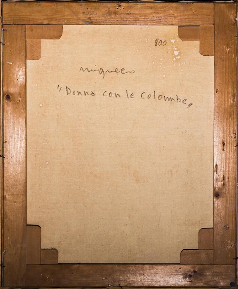 GIUSEPPE MIGNECO (1908-1997)Donna con le colombe, '60 Olio su telaCm...